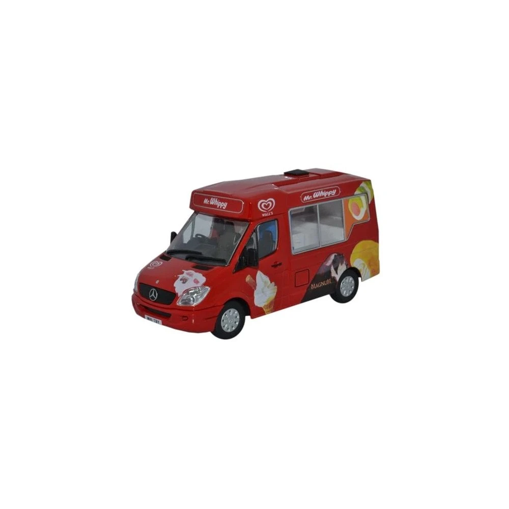 We have chosen Walls Ice Cream, one of the UK’s premier ice cream names as the livery for this new release, which also features some of its favourite brands including Ben and Jerry’s, Magnum and Mr Whippy. In a bright red base colour with highly colourful graphics, it even carries the personalised number plate W11TBY! And, giving younger customers the care they deserve, the rear of the van features a black and white cow issuing a warning to oncoming motorists to ‘Mind that Child. I’m on the Moove’. A final little detail too – the Mercedes badge in the middle of the radiator grille.